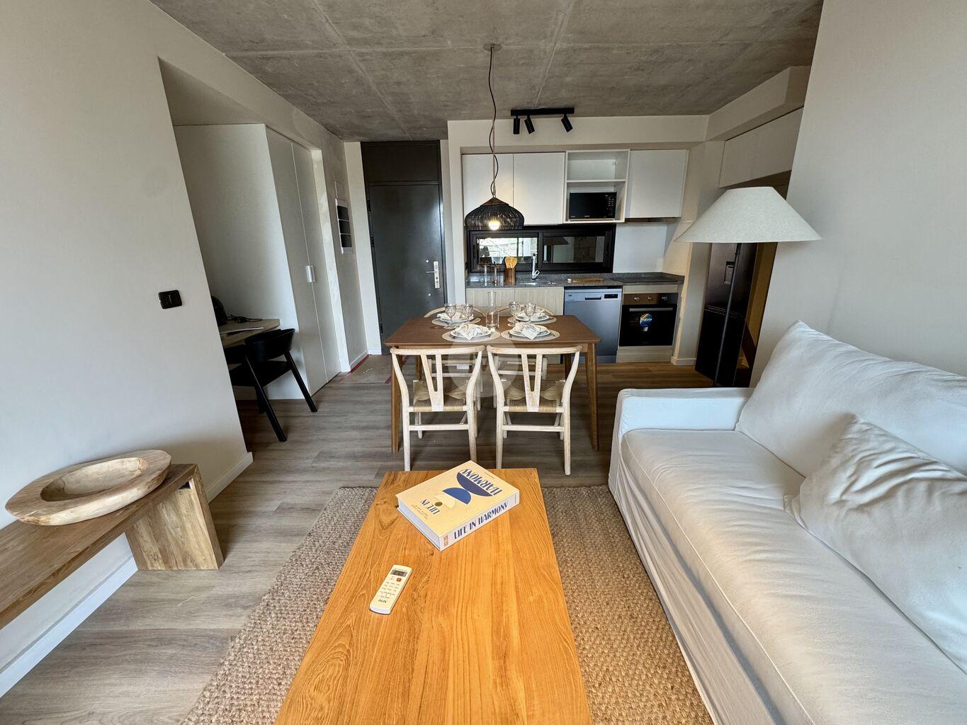 Unidades de 2 dormitorios, cocina integrada, escritorio, 1 baño. Esta unidad cuenta con jardín privado y parrillero. Previsión de AA. Grande ventanales con vista al paisajismo y mucha luz.