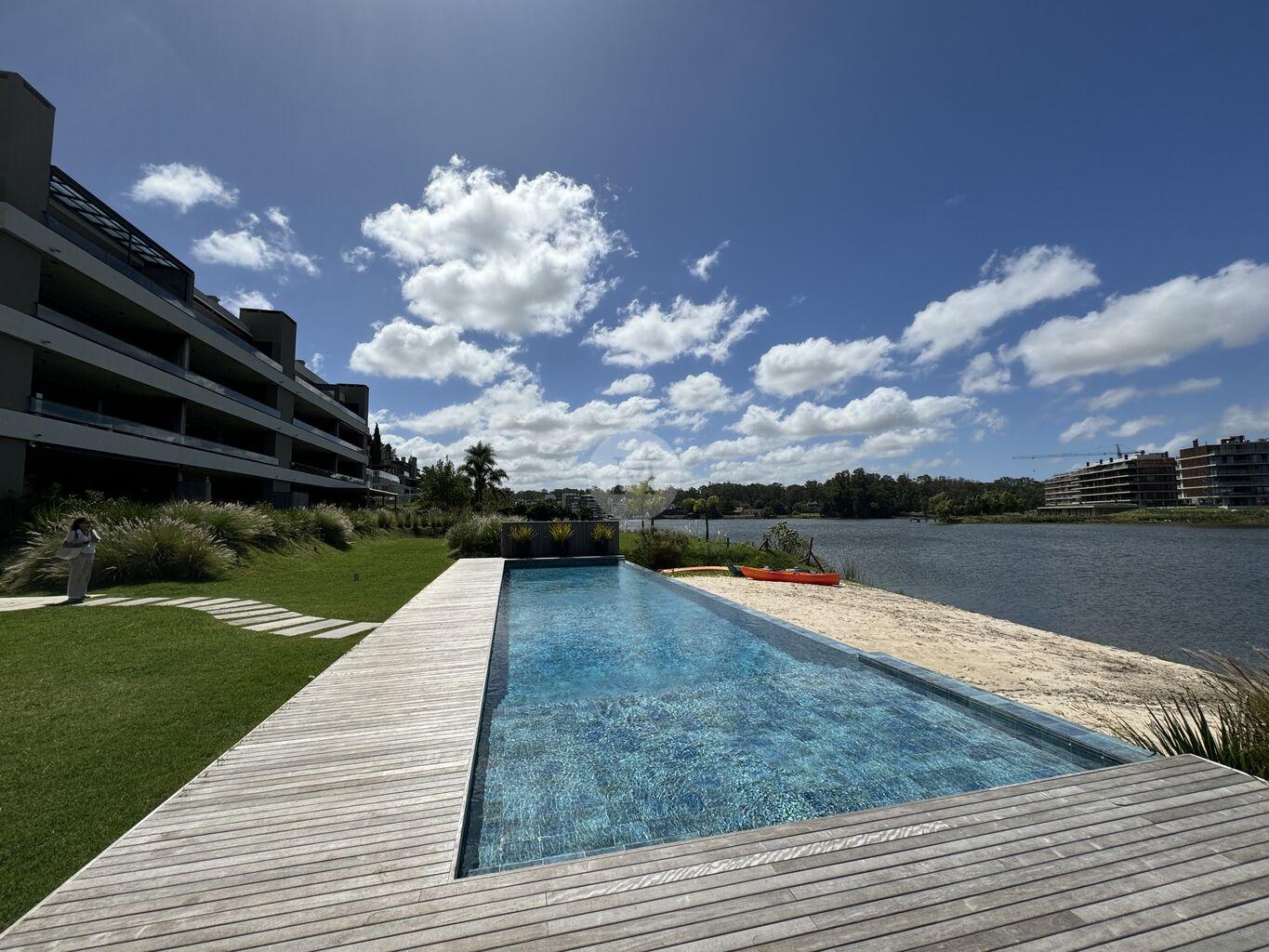 Venta de moderno apartamento a con vista al lago sobre Av. de las Américas, Parque Miramar, divina zona con gran demanda. A tan solo 5 minutos del centro de Carrasco y próximo a colegios y servicios.Unidad muy exclusiva: hall de entrada con despojador y toilette, amplio living-comedor con estufa a leña y grandes aberturas que lo comunican con una gran terraza con parrillero. Estas zonas comunes se encuentran hacia la mejor orientación y con una vista increíble al lago. Funcional cocina definida, equipada con horno, anafe, campana y salida a la terraza lavadero.