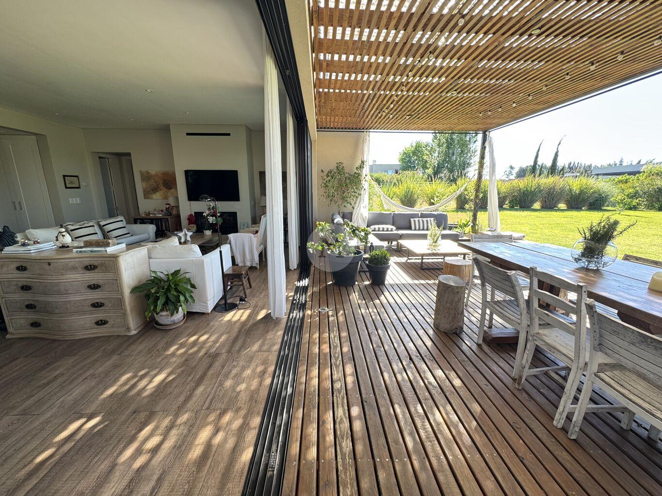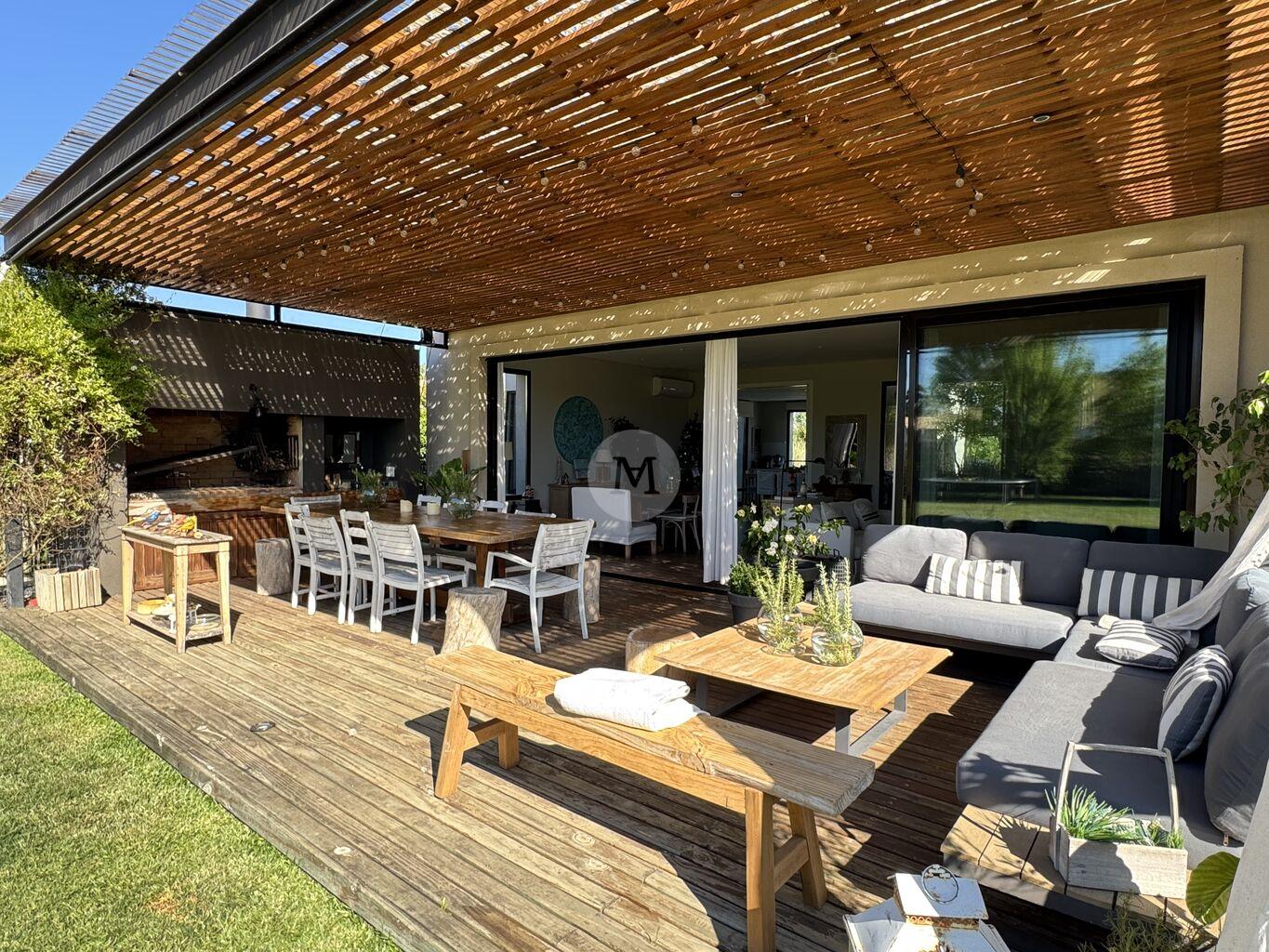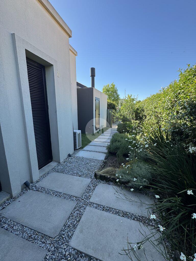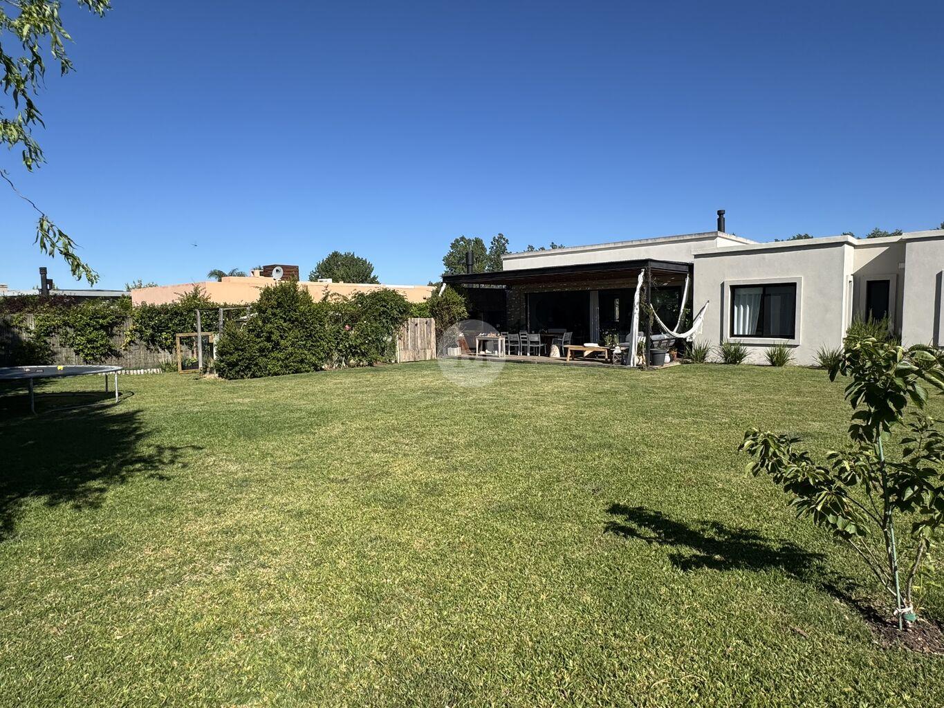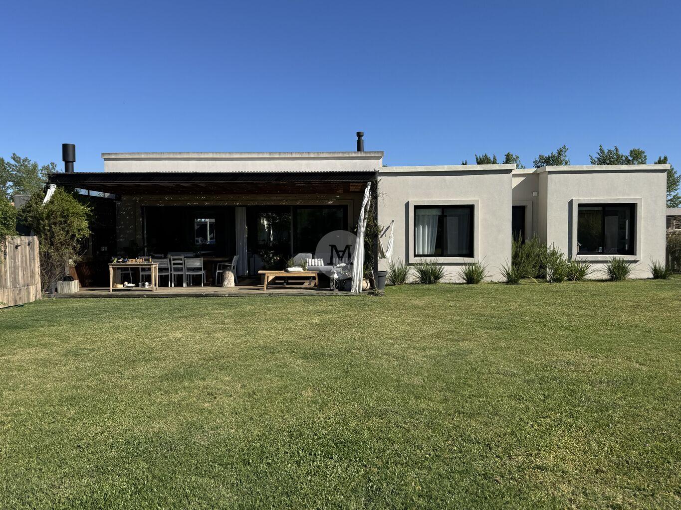 Ubicada en el exclusivo barrio privado Viñedos de La Tahona, esta moderna y luminosa casa de una sola planta se desarrolla sobre un amplio terreno con fondo orientado al norte, ofreciendo confort, diseño y una excelente calidad constructiva.Al ingresar, un cómodo hall de entrada con despojador da paso a un amplio living comedor con grandes ventanales, estufa a leña de alto rendimiento y salida directa al jardín super privado con pérgola y parrillero. Toilette. Cocina, moderna y muy funcional, con isla, ideal para el día a día. Área de servicio con lavadero, tender y baño de servicio.