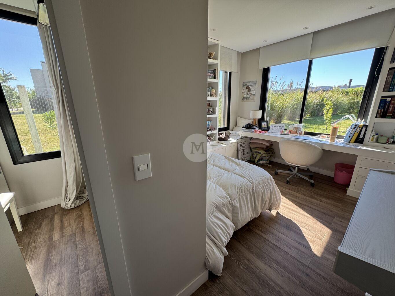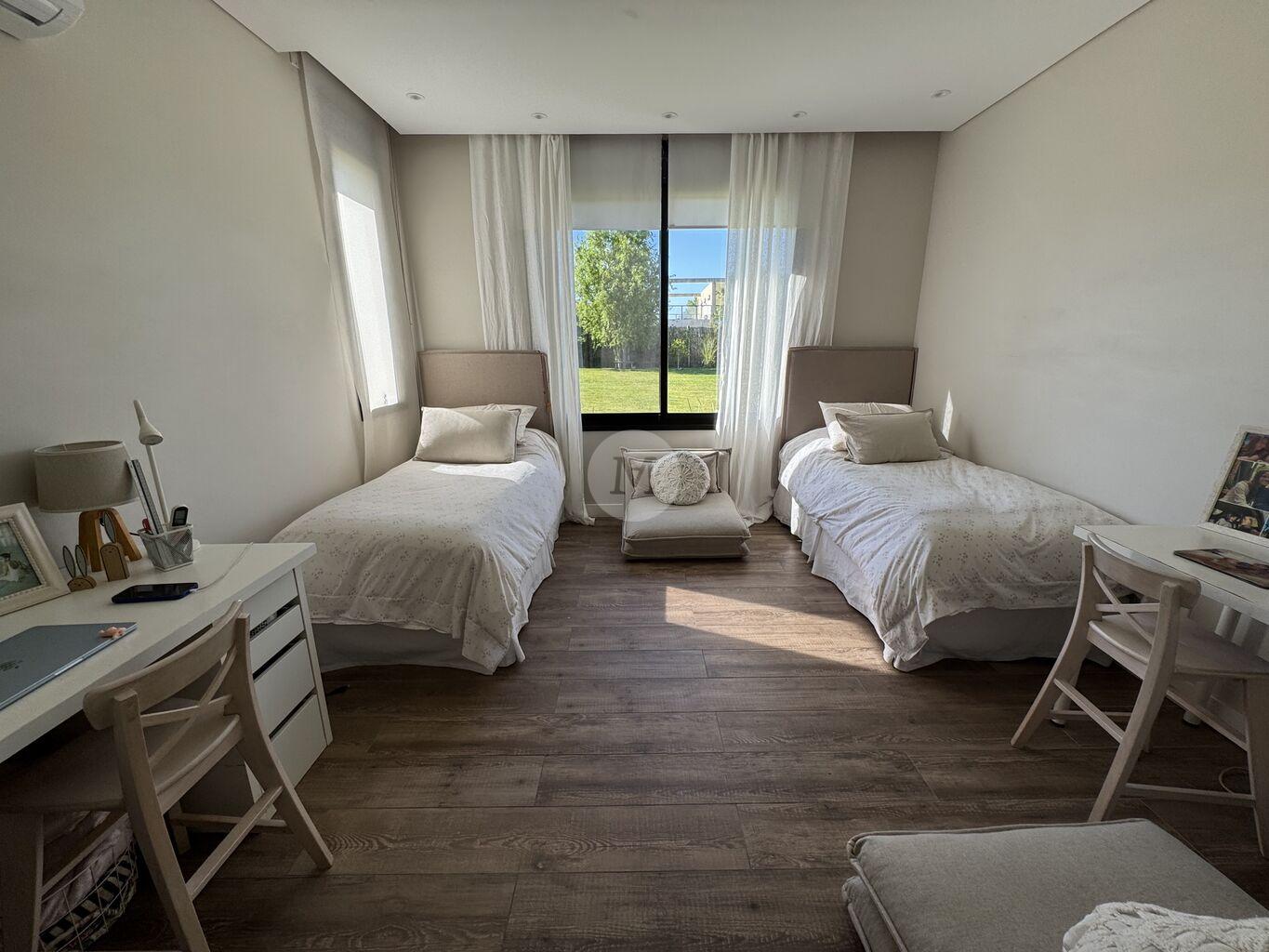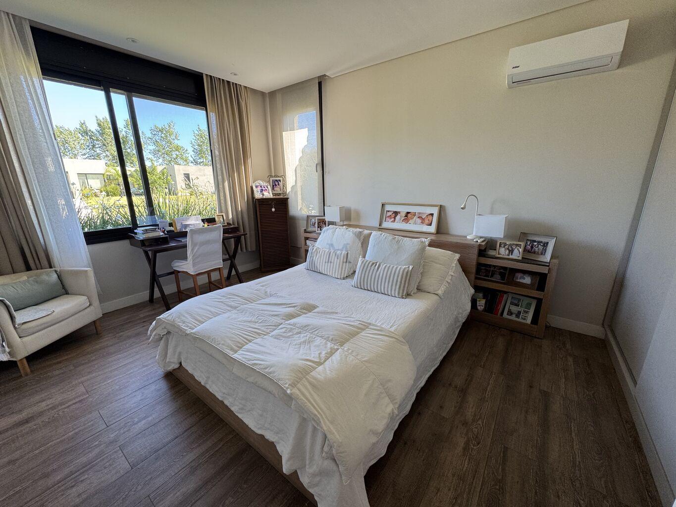 La propiedad cuenta con paisajismo, riego automático, vidrios dobles, persianas eléctricas, cerramientos laterales con portones. Calefacción eléctrica individual por losa radiante, aires acondicionados en todos los ambientesy estufa a leña de alto rendimiento con ductos a los dormitorios.