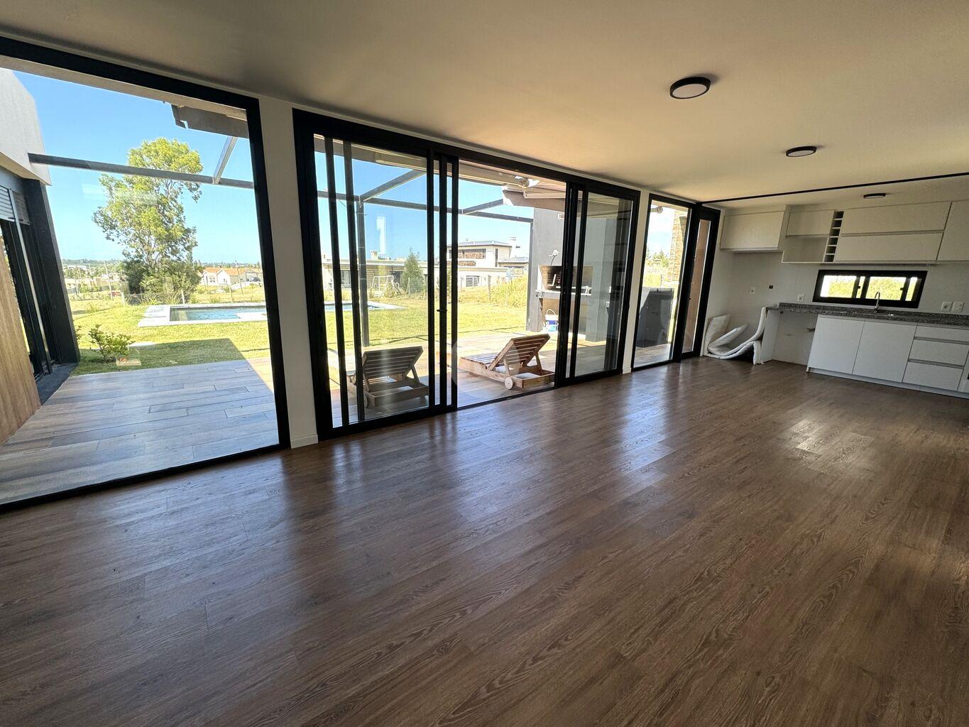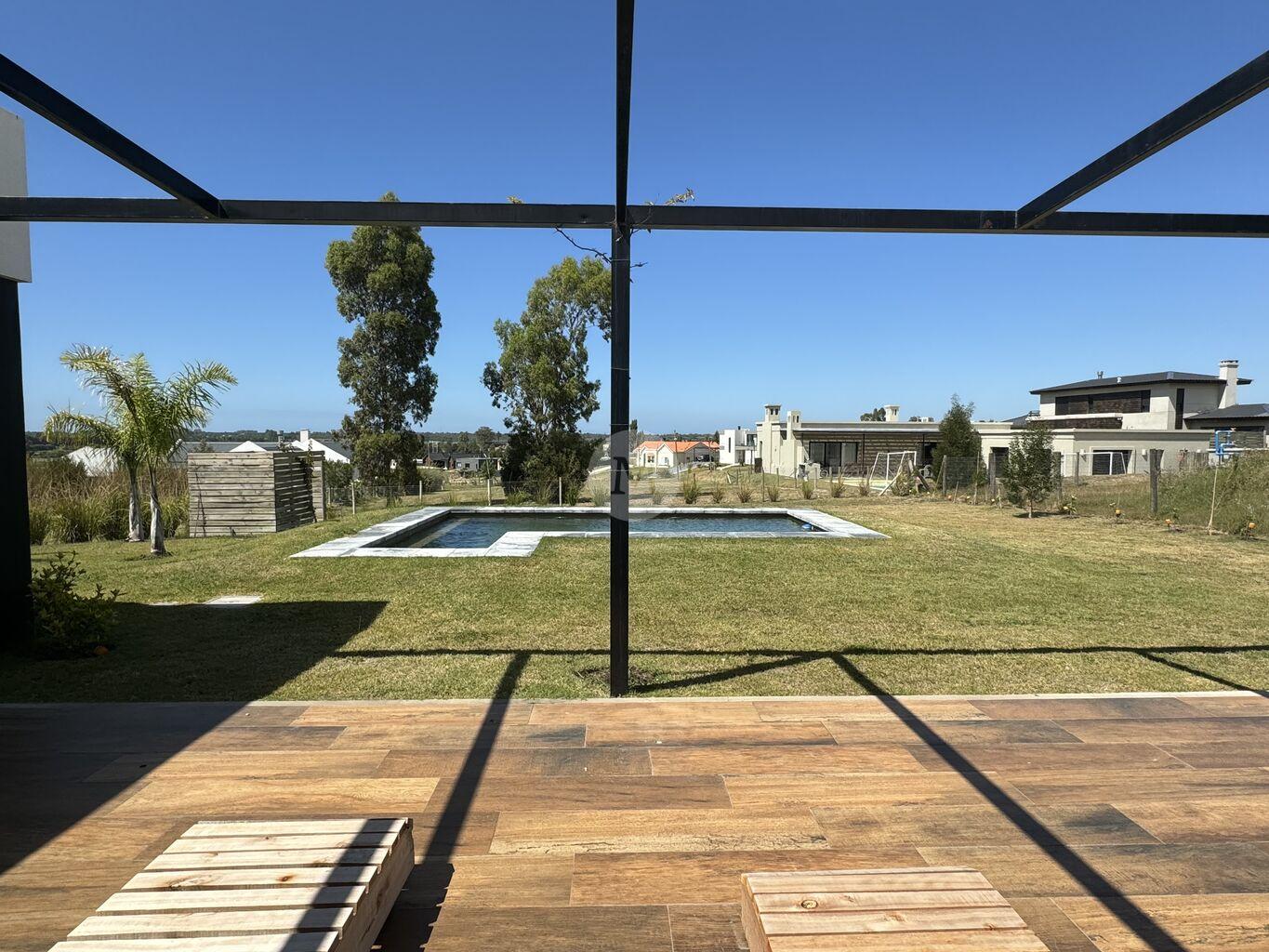 Divina casa nueva en alquiler en Barrio Privado, Mirador de la Tahona. En 1 planta sobre un lote alto con vista despejada al barrio.Living comedor con estufa a leña de alto rendimiento, cocina equipada (horno, anafe de inducción, campana), 3 dormitorios (uno con baño en suite y vestidor), 3 baños (dos completos más 1 de visitas). Barbacoa cerrada acompañada de una pérgola con deck, piscina climatizada. Cortinas de enrollar y mosquiteros en todas las ventanas. Aires acondicionados Inverter en todos los ambientes y calefones instalados. Construcción tradicional y materiales de excelente calidad. Pozo de agua y riego instalados y funcionando.