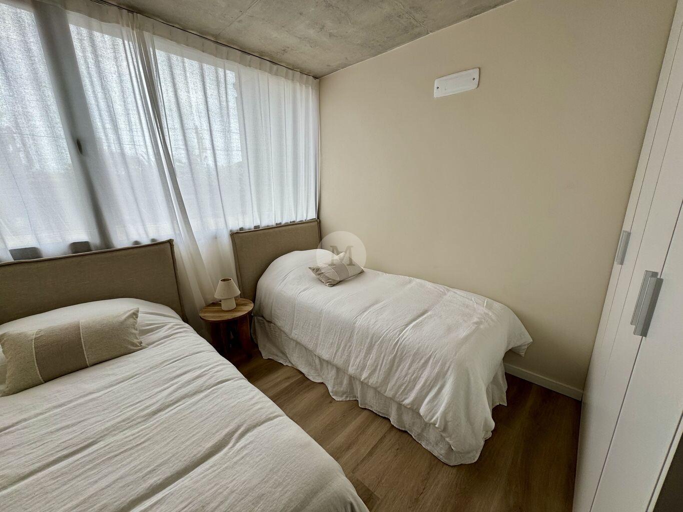 Unidades de 2 dormitorios, cocina integrada, escritorio, 1 baño. Esta unidad cuenta con terraza privada y parrillero. Previsión de AA. Grande ventanales con vista al paisajismo y mucha luz.