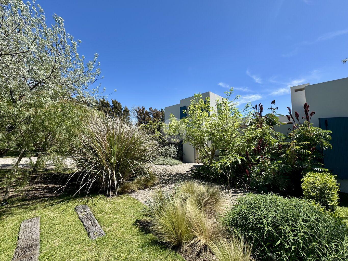En el exterior se destacan un jardín parquizado, piscina y un acogedor espacio con estufa a leña. Todo acompañado de excelente calidad constructiva, proyecto del estudio RMA, y divinas vistas hacia las canchas de golf, con un diseño moderno de techos altos y un paisajismo único.