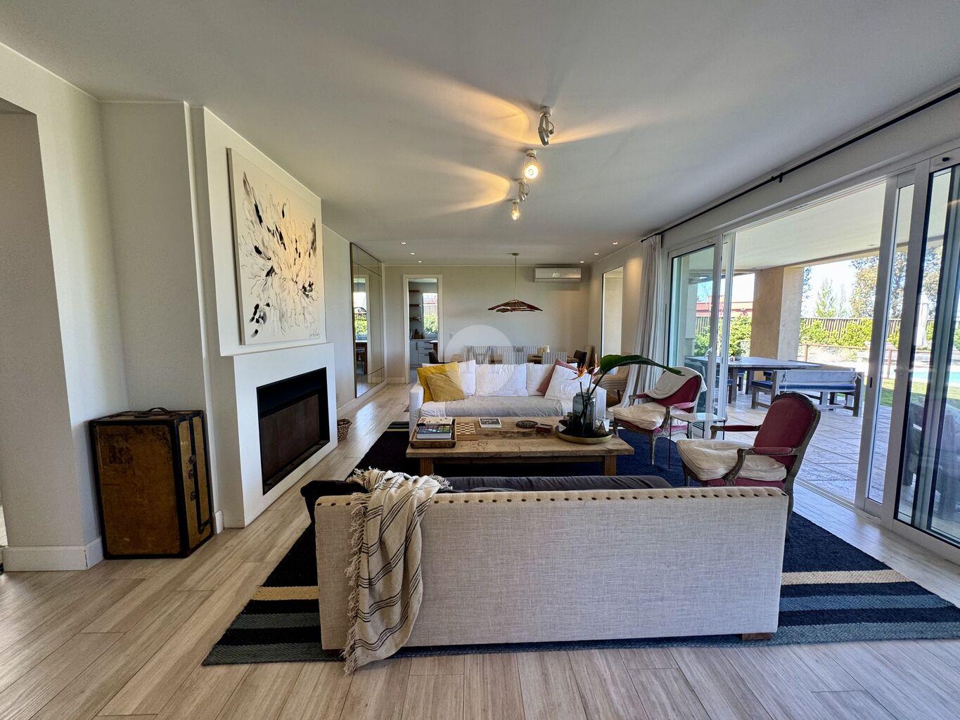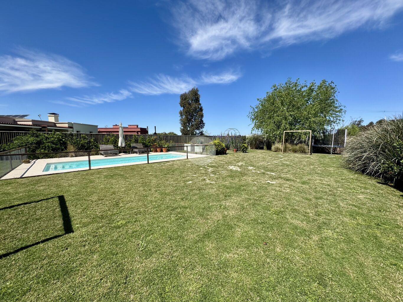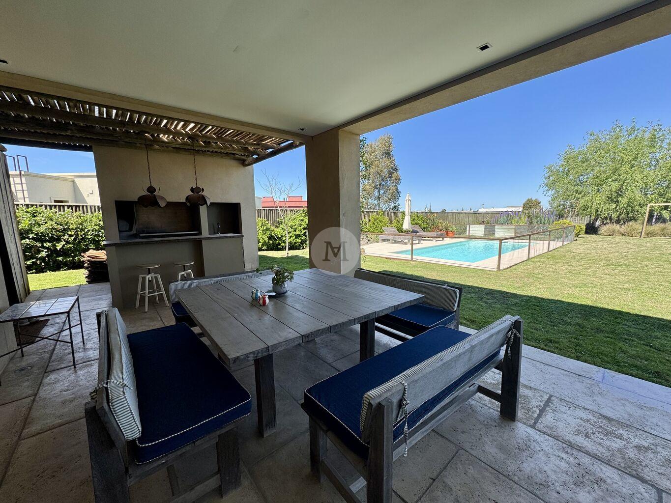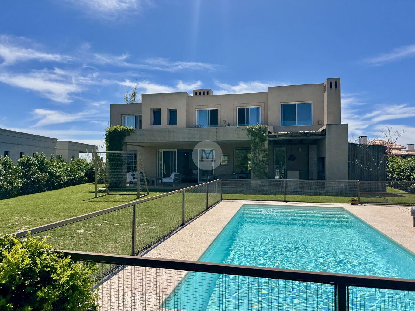 Moderna y funcional, ubicada en uno de los mejores lotes de Mirador de la Tahona. Desarrollada en dos plantas: 306 m2 edificados, 23 m2 de galería, en un terreno de 1.182 m2 con gran jardín y piscina.En planta baja: Hall de entrada, toilette, amplio living comedor con estufa a leña tradicional y grandes ventanales que aportan mucha luz y lo conectan con la pérgola techada y al jardín muy disfrutable. Estar diario con circulacion al living comedor y salida al jardín. Cocina definida con isla en el medio (equipada con horno, anafe, campana), con salida directo al parrillero. Servicio completo y lavadero.