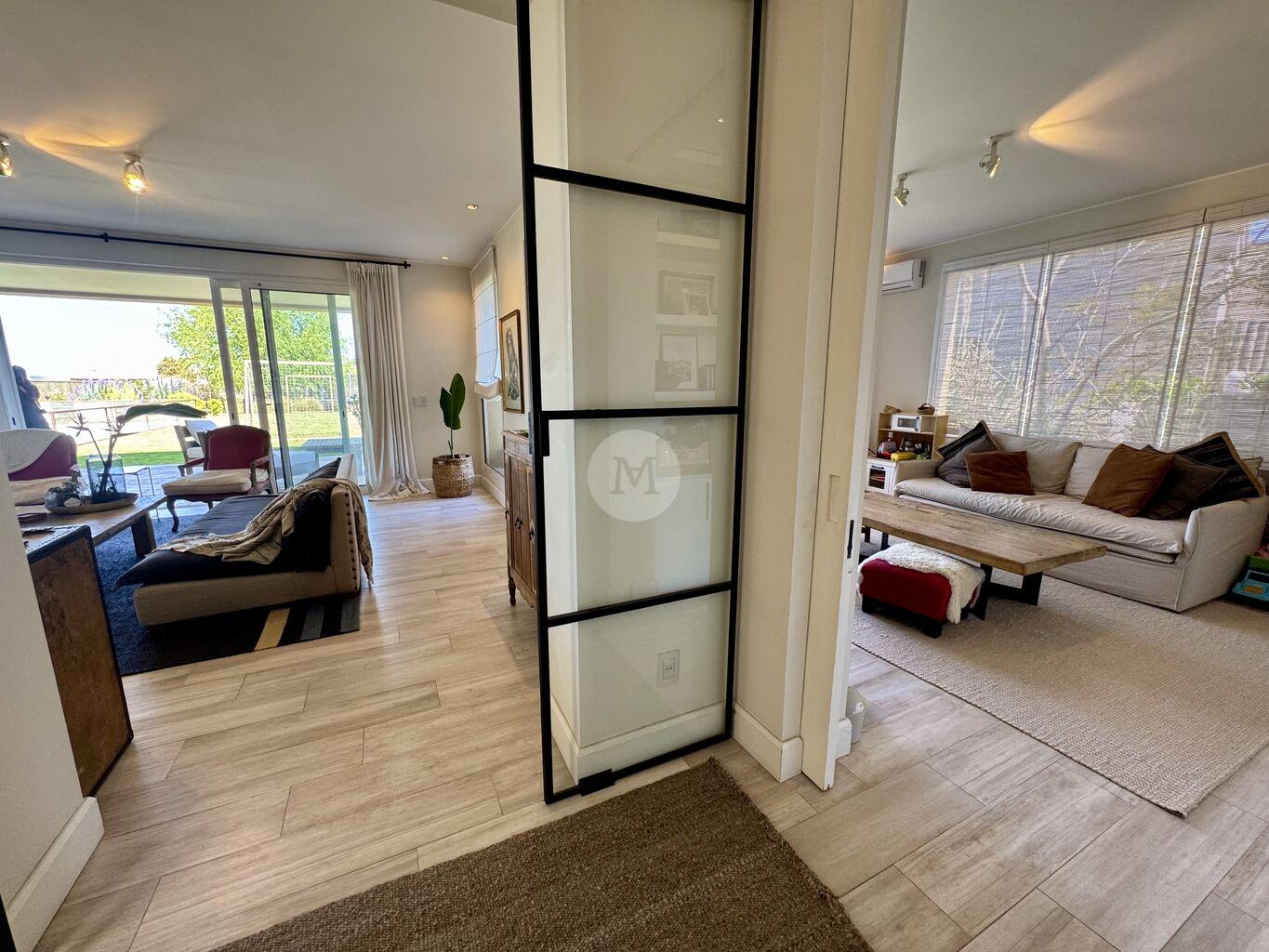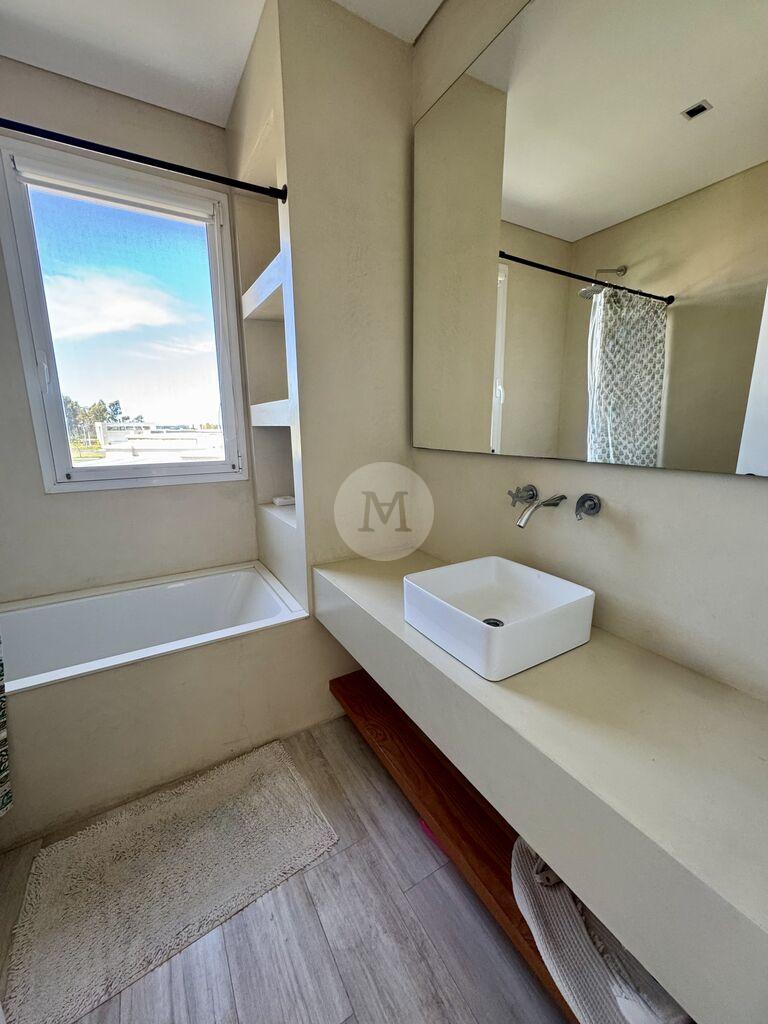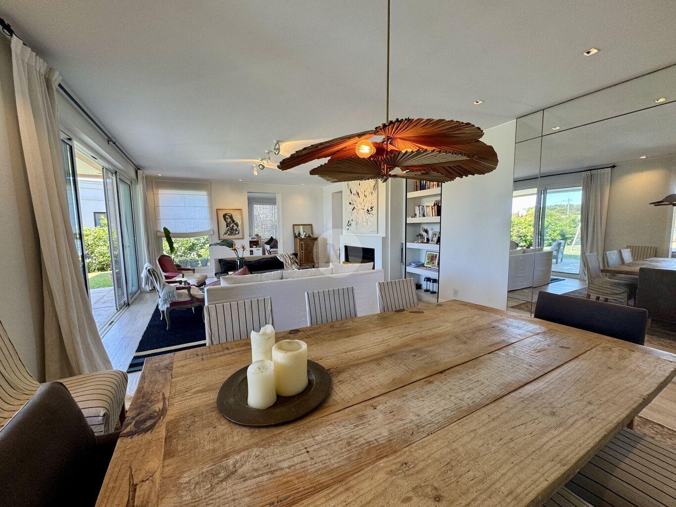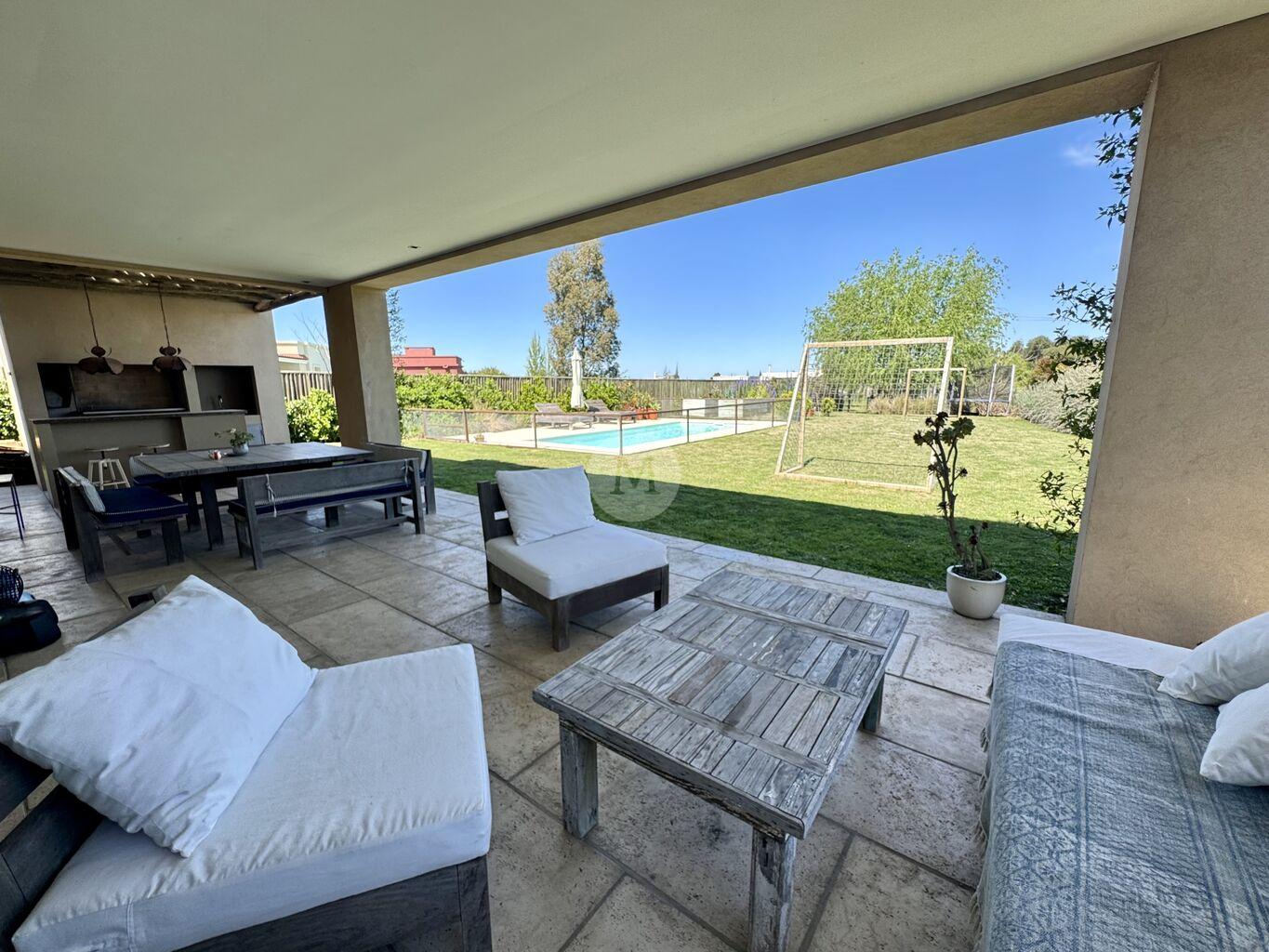 Moderna y funcional, ubicada en uno de los mejores lotes de Mirador de la Tahona. Desarrollada en dos plantas: 306 m2 edificados, 23 m2 de galería, en un terreno de 1.182 m2 con gran jardín y piscina.En planta baja: Hall de entrada, toilette, amplio living comedor con estufa a leña tradicional y grandes ventanales que aportan mucha luz y lo conectan con la pérgola techada y al jardín muy disfrutable. Estar diario con circulacion al living comedor y salida al jardín. Cocina definida con isla en el medio (equipada con horno, anafe, campana), con salida directo al parrillero. Servicio completo y lavadero.