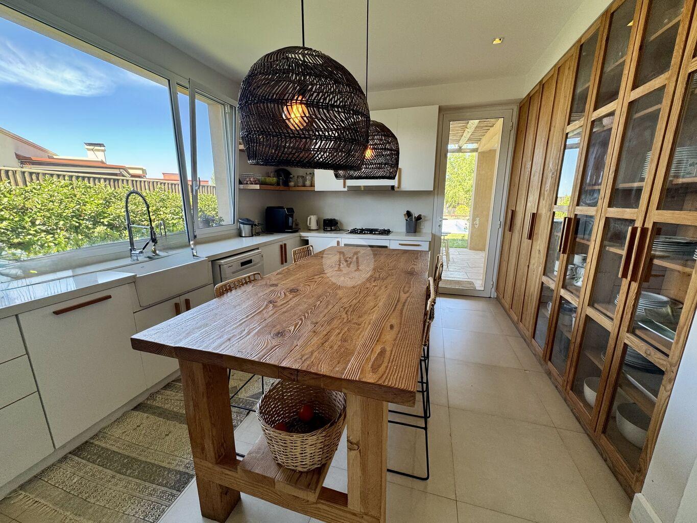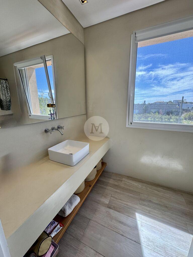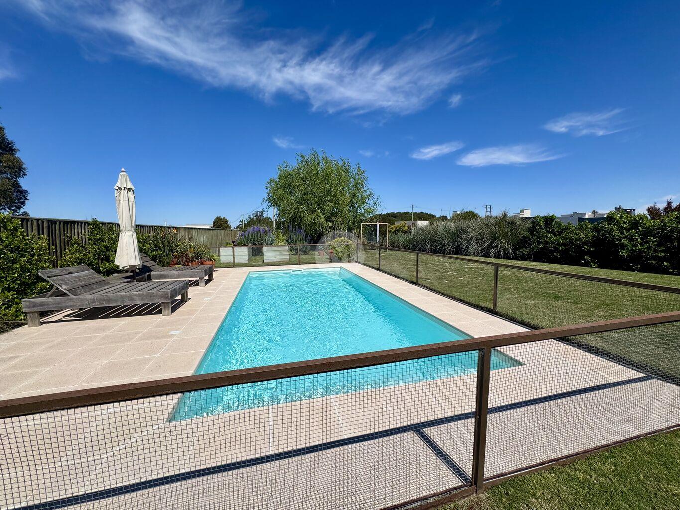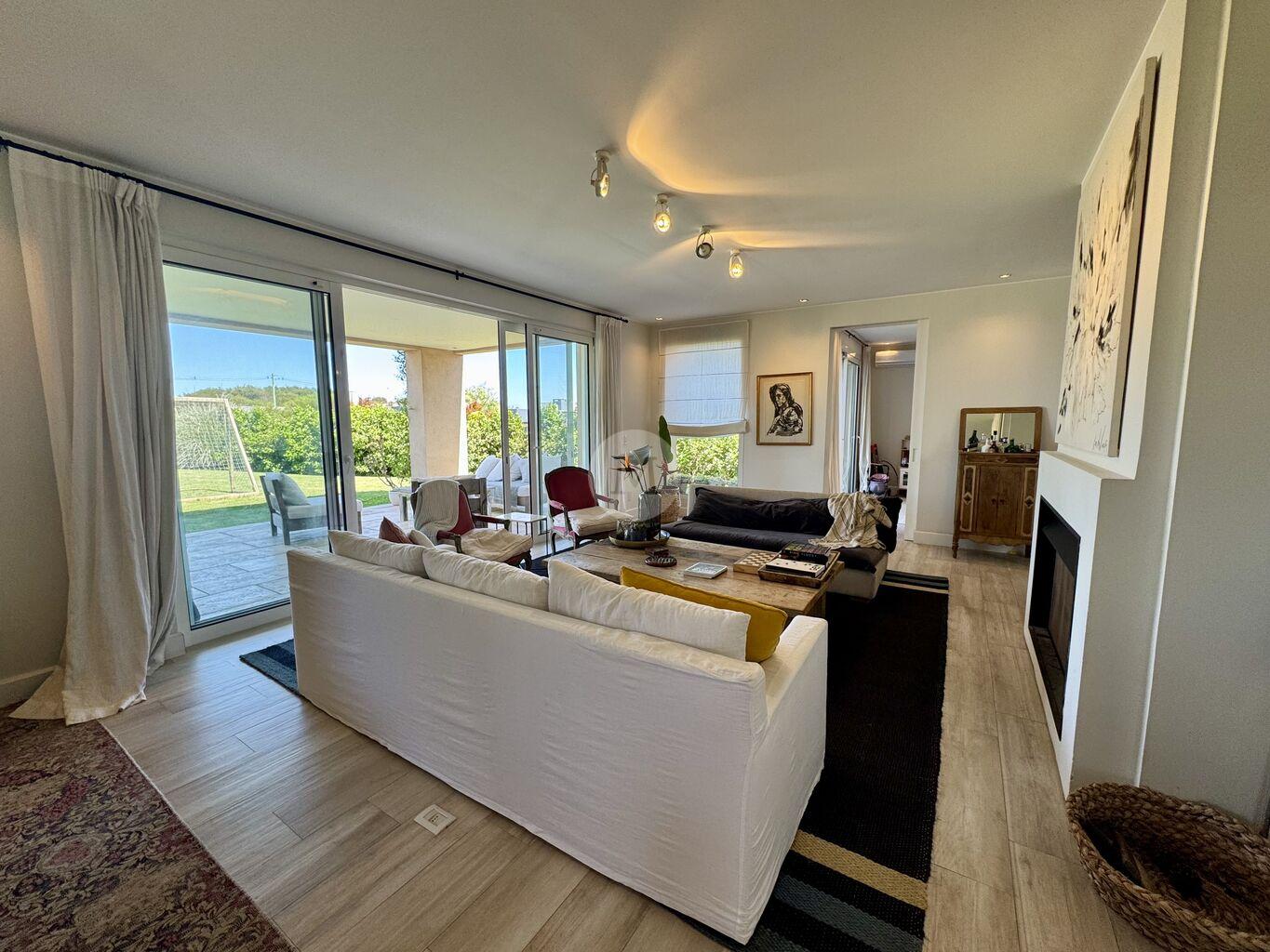 Moderna y funcional, ubicada en uno de los mejores lotes de Mirador de la Tahona. Desarrollada en dos plantas: 306 m2 edificados, 23 m2 de galería, en un terreno de 1.182 m2 con gran jardín y piscina.En planta baja: Hall de entrada, toilette, amplio living comedor con estufa a leña tradicional y grandes ventanales que aportan mucha luz y lo conectan con la pérgola techada y al jardín muy disfrutable. Estar diario con circulacion al living comedor y salida al jardín. Cocina definida con isla en el medio (equipada con horno, anafe, campana), con salida directo al parrillero. Servicio completo y lavadero.