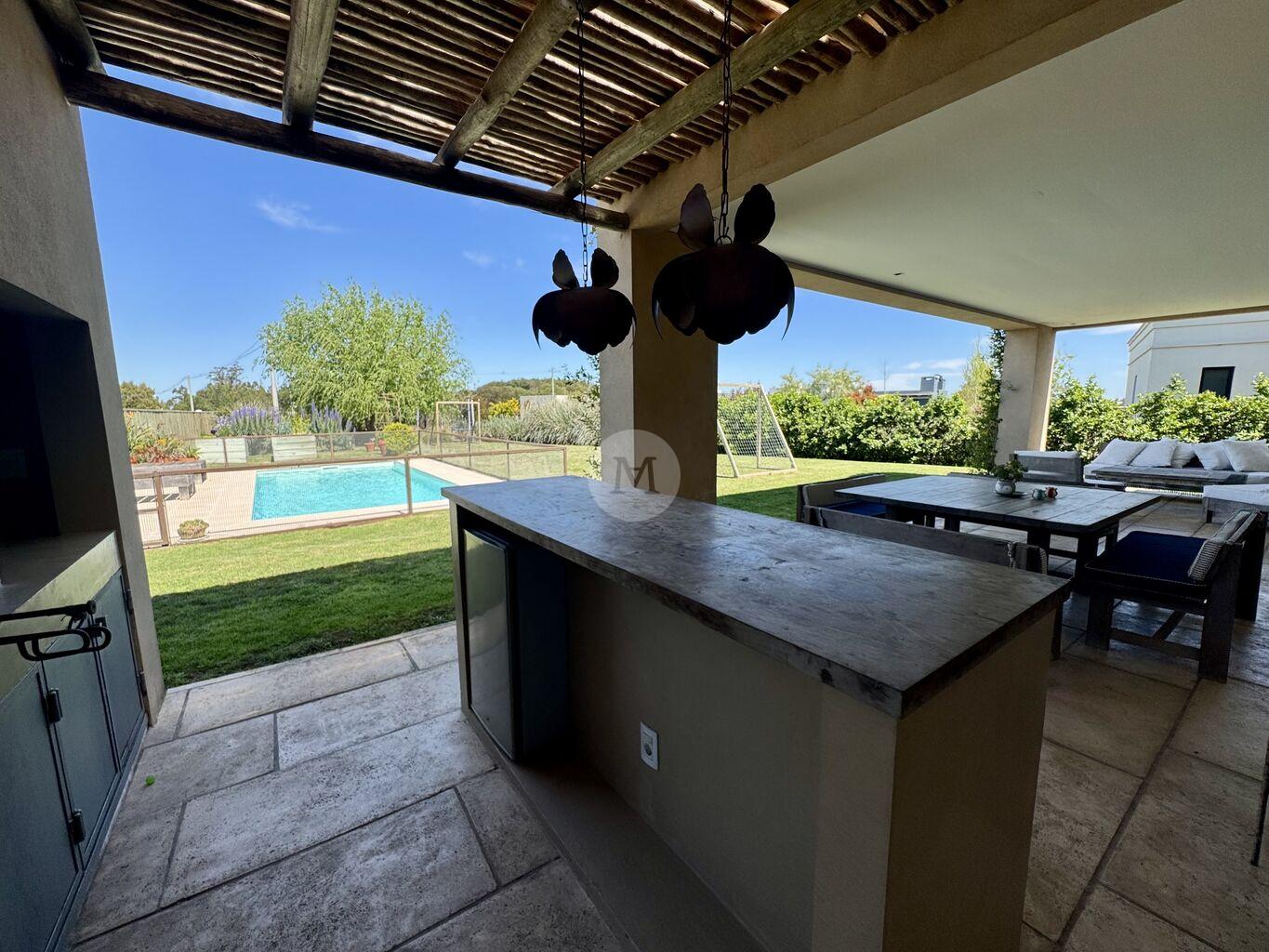 El área exterior se compone de una galería techada muy disfrutable, parrillero y barra.