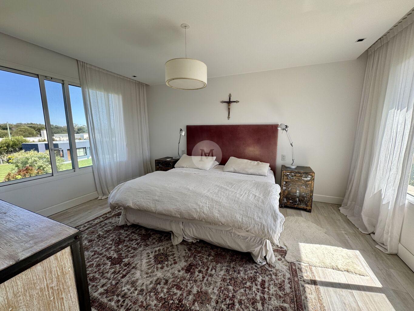 En planta alta nos encontramos con un hall de distribución con escritorio y 4 dormitorios. Mastersuite con amplio vestidor y baño. 3 dormitorios secundarios con amplios placares y 2 baños completos (1 de ellos en suite).