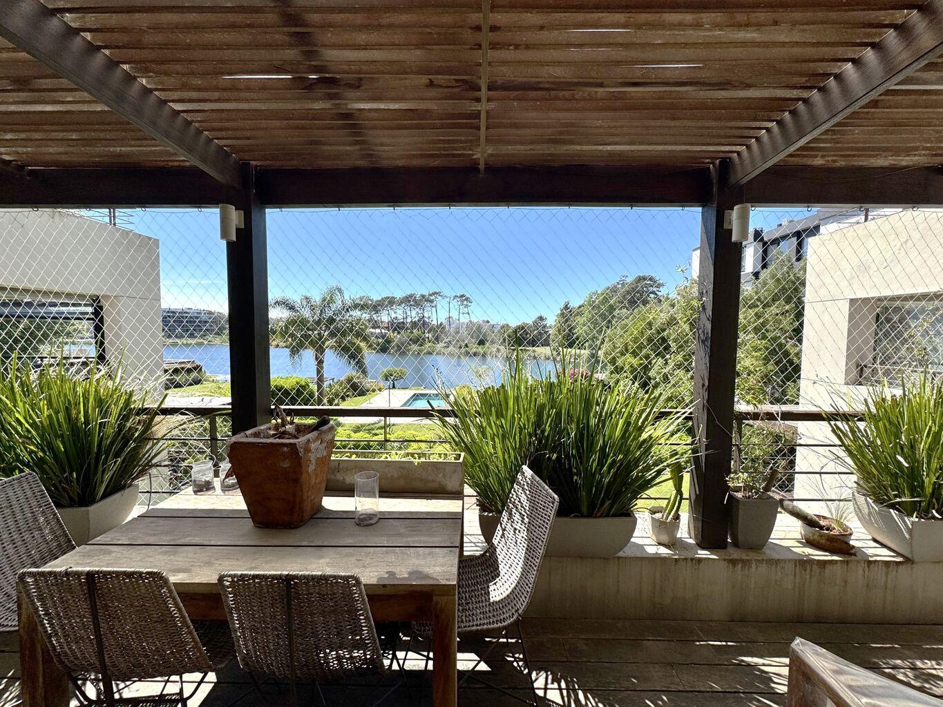 Hall de entrada - Living comedor al frente con salida a terraza techada con vista al lago . Baño social