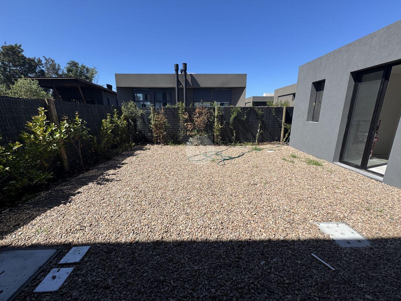 Alquiler moderna PH a estrenar de diseño en Barrio Privado Parques II, mucha seguridad. Zona de gran desarrollo con todos los servicios y colegios cerca. 3 dormitorio y servicio.La casa se desarrolla en dos plantas. Planta baja: amplio living-comedor con estufa a leña y grandes ventanales orientados al norte, con salida a la terraza con parrilero. Cómoda cocina integrada al estar con amplia mesada en U, despensa y servicio completo. Toilette.