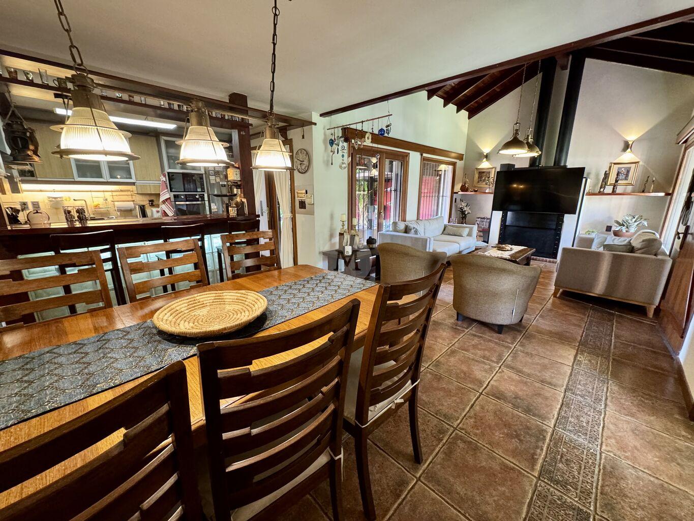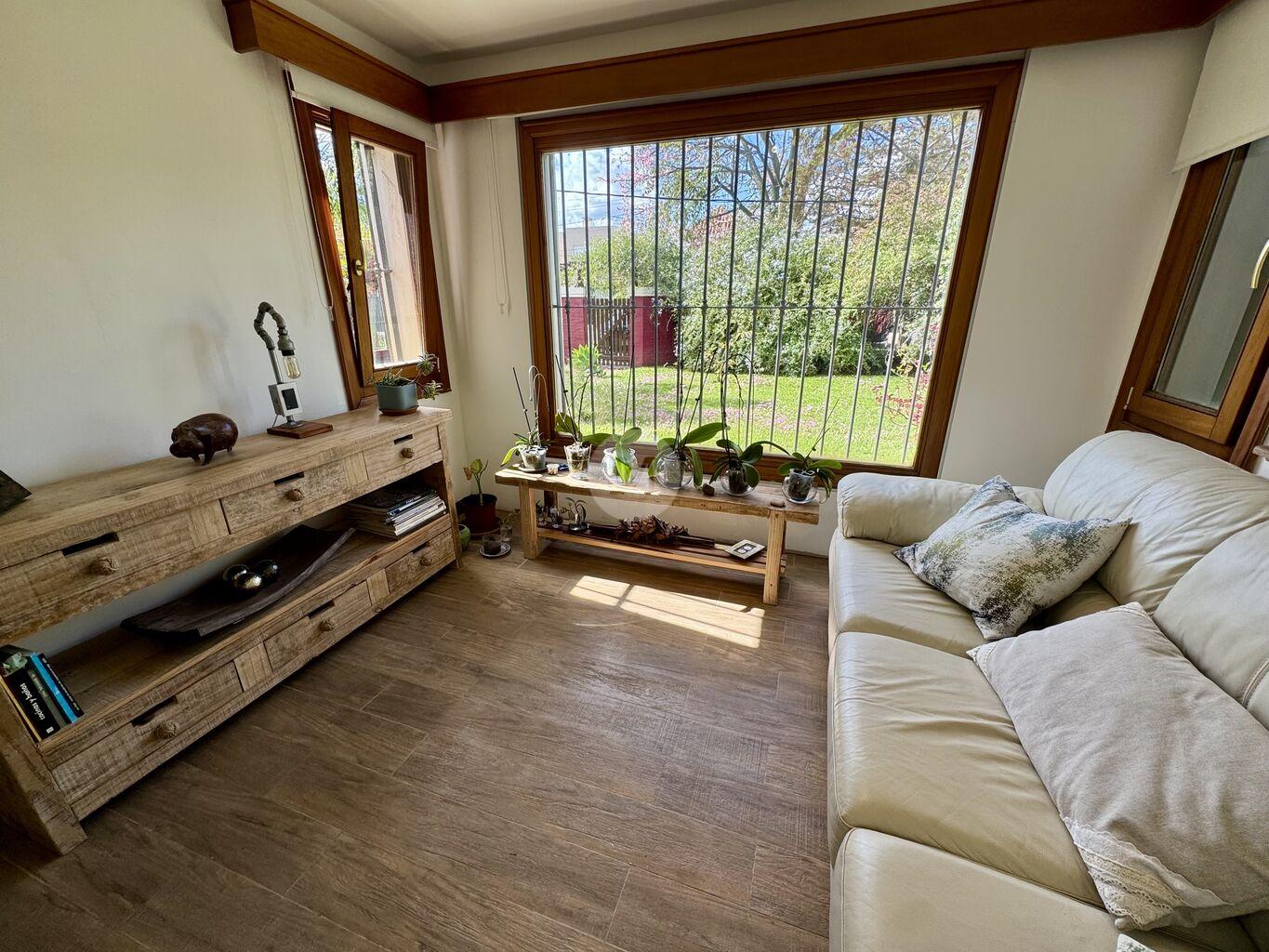 Living-comedor amplio y luminoso, con grandes ventanales al frente y al jardín, los cuales aportan gran luminosidad y vistas verdes. Estufa a leña con distribución de calor. Cocina integrada, cómoda y funcional, con muy buen espacio de guardado. Estar o playroom independiente al frente, ideal para juegos o televisión, conectado al living comedor mediante una puerta corrediza.